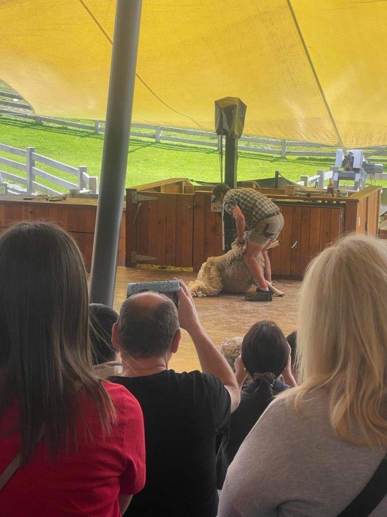 After the lunch you move over to a sheep shearing and sheep dog show which is super entertaining. The rancher talks to the audience about the farm and facts about shearing sheep and sheepdogs. The dog show is simple but excellent. He whistles to the dog who does its thing with the sheep on a very steep hill right in front of everybody. These types of sheepdogs use their stare to move the sheep around. They are so clever, and it is really quite impressive.
