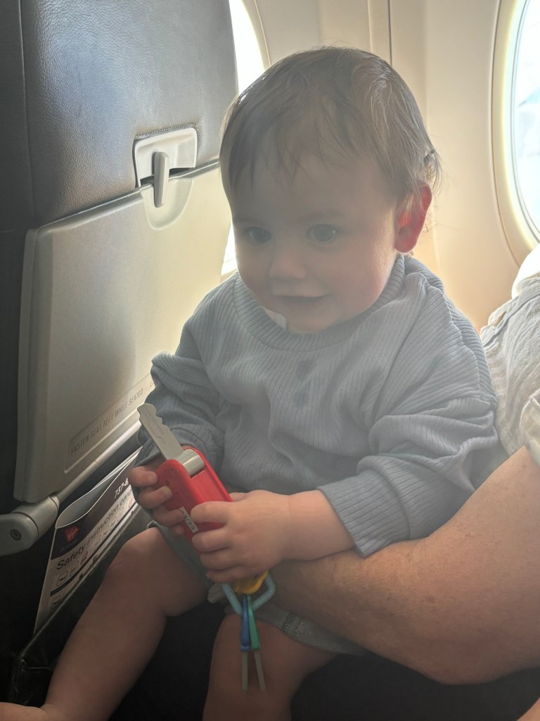We drove back on the beautiful drive seeing the stunning lake and mountains for the final time. We arrived at the airport and dropped our car back. It was a bit of a hassle checking in as the scanner wouldn’t read our passports and the airport was incredibly busy. We eventually made our way through check-in and security where we had to wait in the packed terminal for about an hour. While we were doing this we saw people lining up for a Qantas flight which was cancelled. Everybody had to return their duty-free purchases and exit back through security and customs. This scared us, but thankfully our flight departed on time. Julian had a much better flight this time. He got some sleep in, he watched some Ms Rachel and he played with his toys which made life a lot easier.