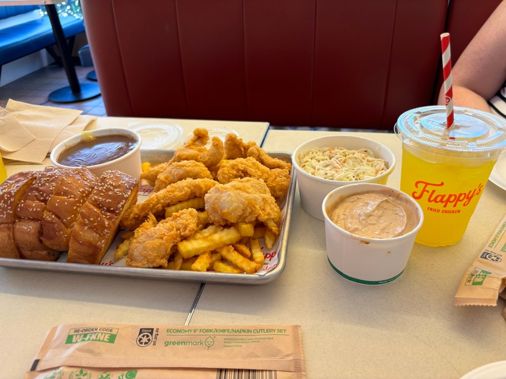 It was a very quick stop as we had pre-ordered these games until we hit the road to Penrith where we were stopping in at a food chain that has gone viral recently which we were intrigued about. It is called Flappy’s Fried Chicken which is an Australian version of the viral sensation in the US Raising Cane’s. We ordered the family deal which included fried chicken tenders, coleslaw, potato & gravy, fries with signature sauce, potato toast and 2 litres of the homemade lemonade.