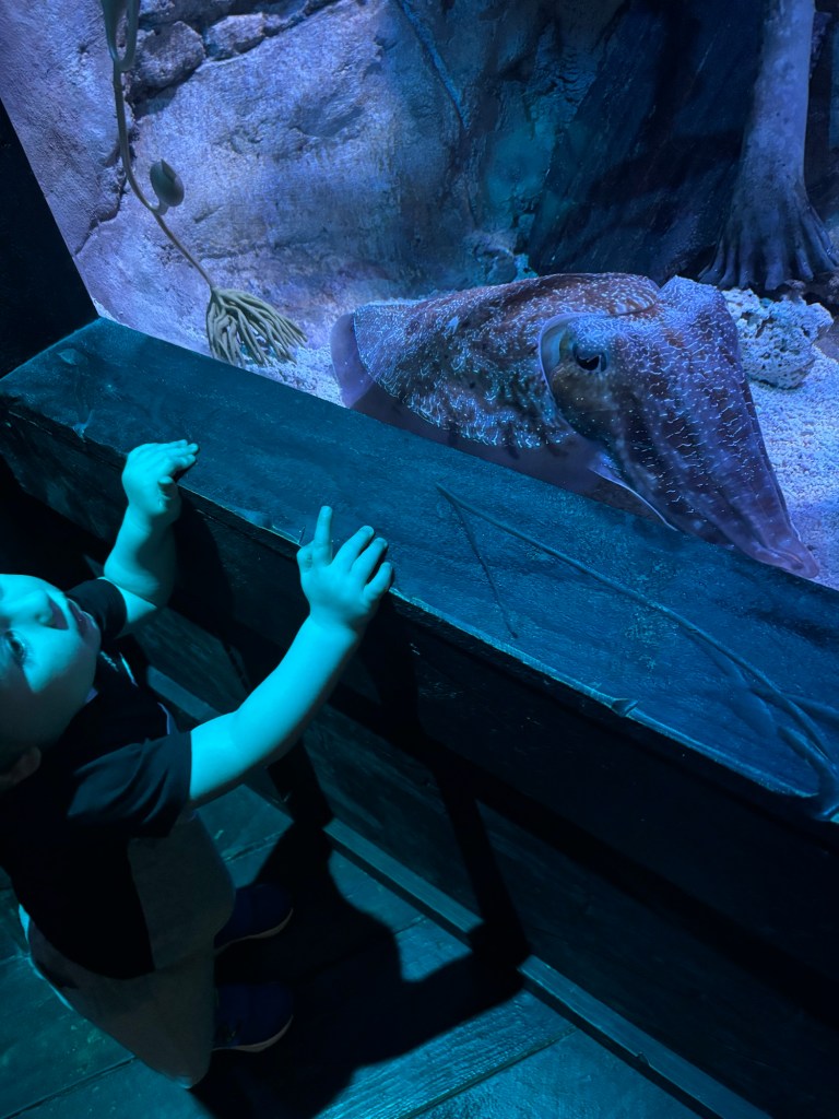 After our stroll we walked across the car park to the SeaLife aquarium. It is smaller than the Sydney one but also less busy. Julian really enjoyed this. He loved seeing the sea life up close, especially the sharks, the turtles and the penguins. We also watched the seal show that we all loved.