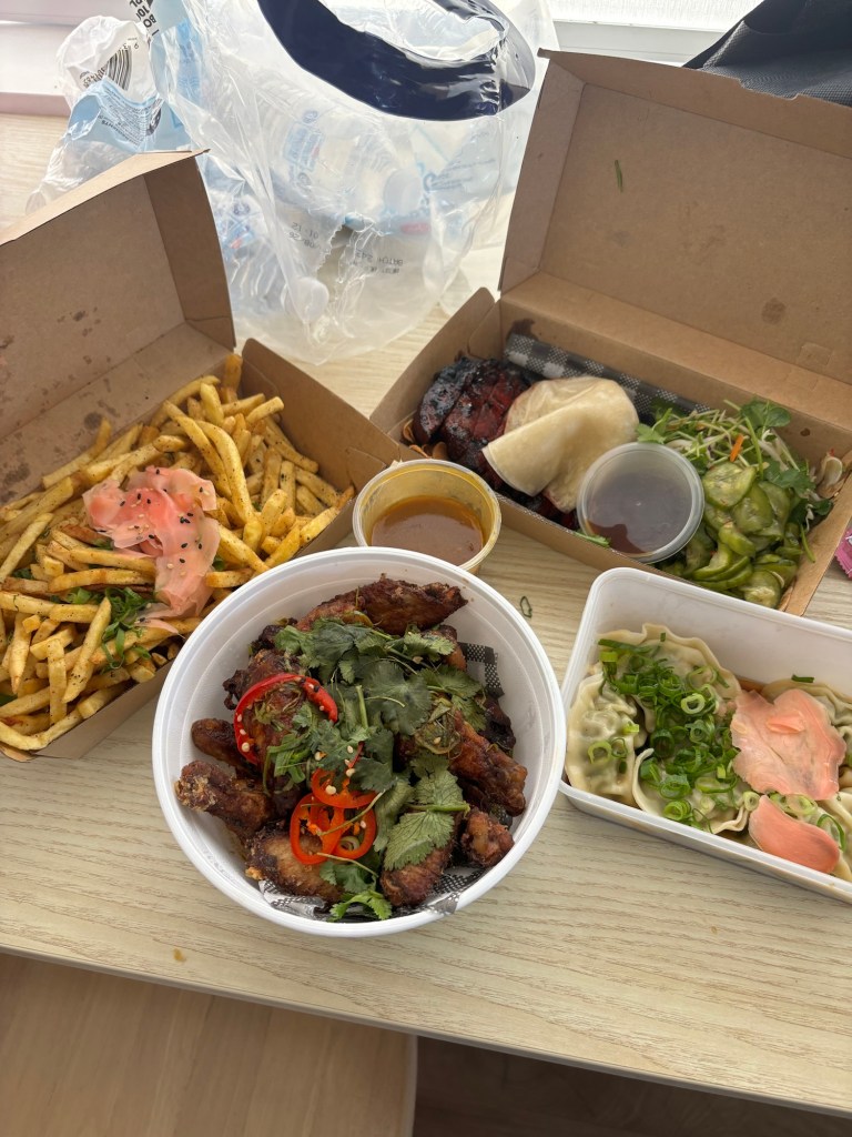 After the aquarium we grabbed some lunch from a very popular Asian fusion restaurant nearby called Riceboi. We got katsu curry fries, pork char sui, dumplings and wings. Best meal we’ve had yet. we also got some freeze dried skittles from a nearby lolly shop. Dang yum!