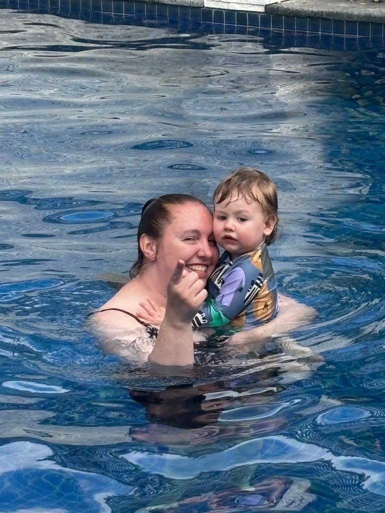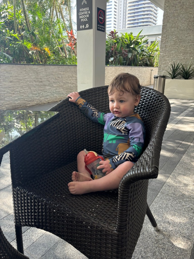 Today was a more chill day which we needed after yesterday. We started by getting up early (about 6am) which isn’t too crazy because the sun rises at like 4:30am here, it’s ridiculous and we went down to the outdoor hotel pool and had a swim which was lovely. It takes Julian a little bit to warm up to water activities, but once he does he loves it.
