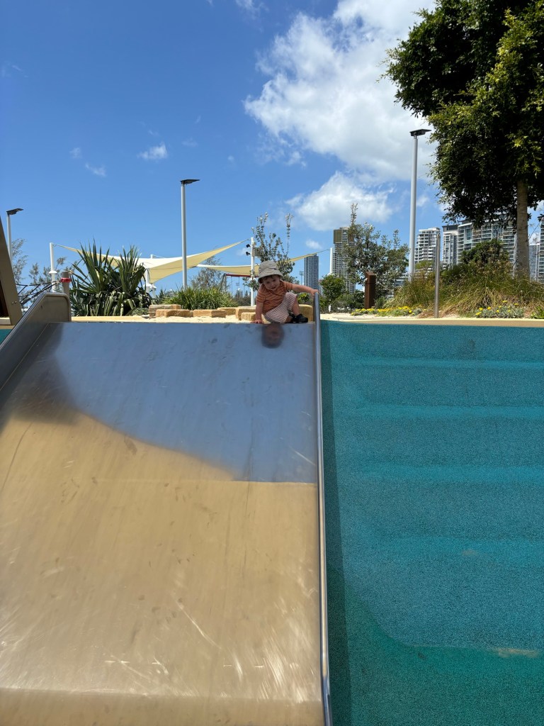 We got back to the hotel and Julian had his nap and we relaxed some more. Then after we geared up and went for another good walk. This time we stopped by Kurrawa park that has a massive and cool playground. It was awesome but unfortunately Julian was just a little bit too small to enjoy it fully. But that didn’t stop him from trying.
