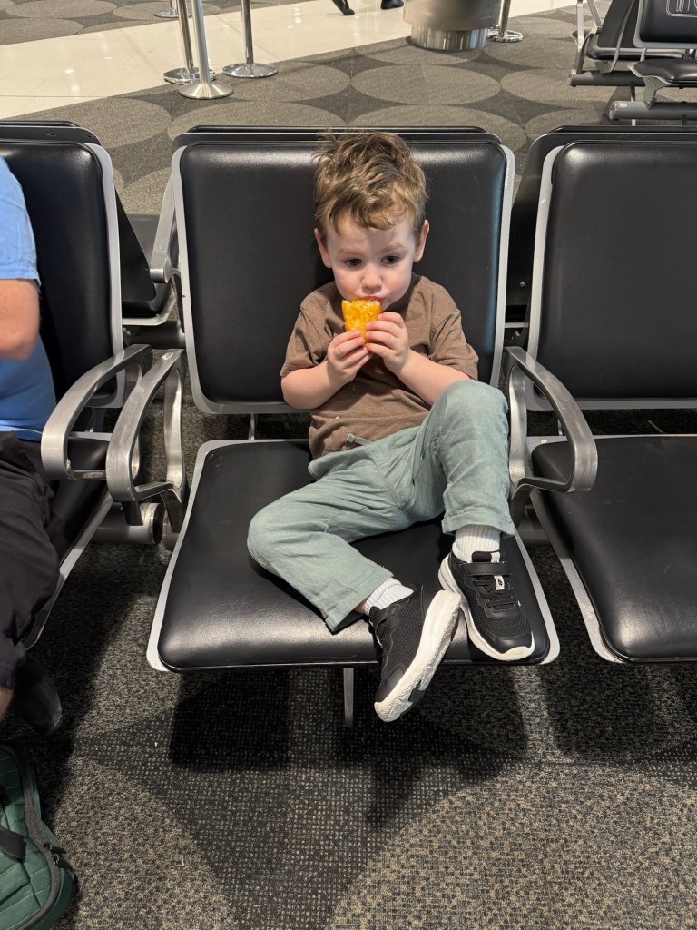 One of the challenges of travelling with a child is all of the luggage you need to take, that they can’t help carry. We had three big luggages, a pram, 3 backpacks and a nappy bag. We had to haul all of that stuff to the check in gate with a toddler in tow – it was stressful.