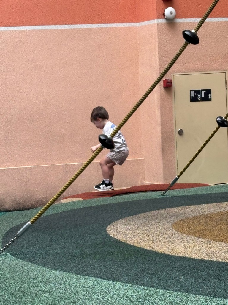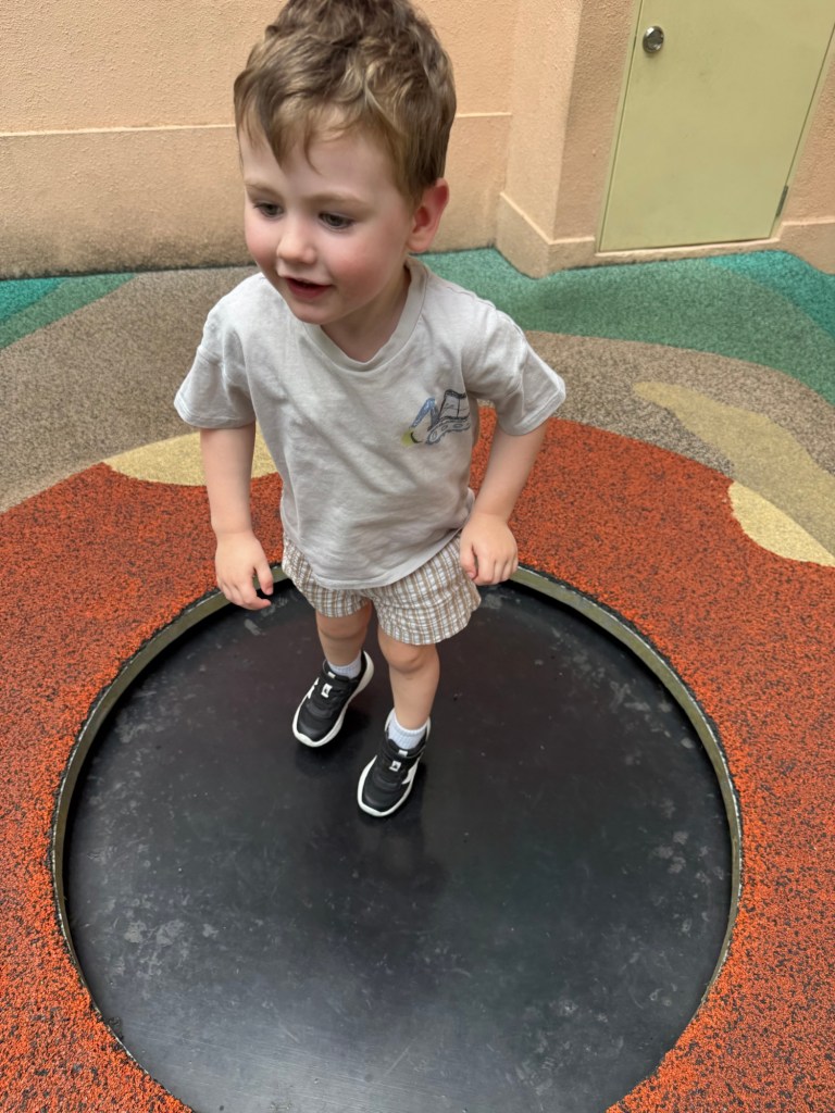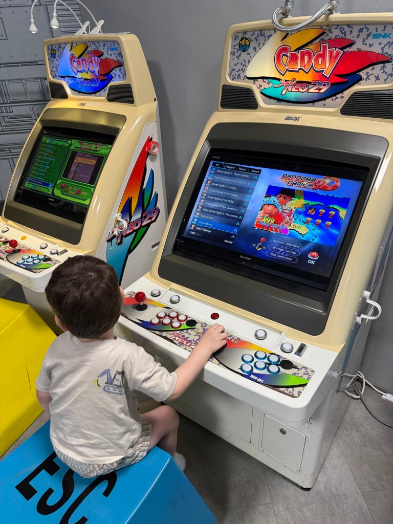 We settled into the hotel and checked out the indoor play centre for kids in the hotel. They have a cool retro arcade that we had a look at and Julian played with the toys in here.