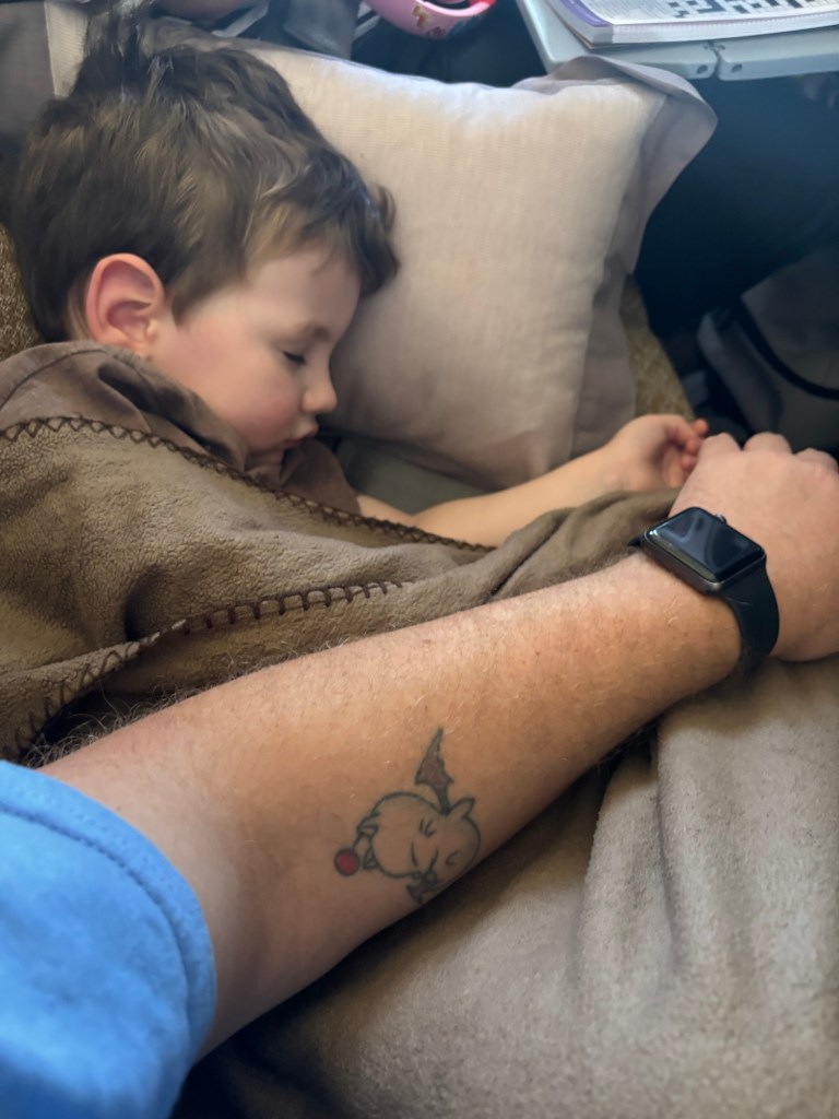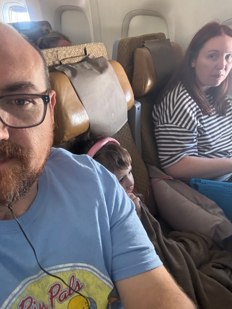 We ended up boarding the plane for SQ212 which departed on time. Let me tell you right now, 8 hours with an active three year old is not for the faint of heart. To be honest though he was pretty good. Unlimited screen time and snacks, all normal rules out the window. We were in survival mode.