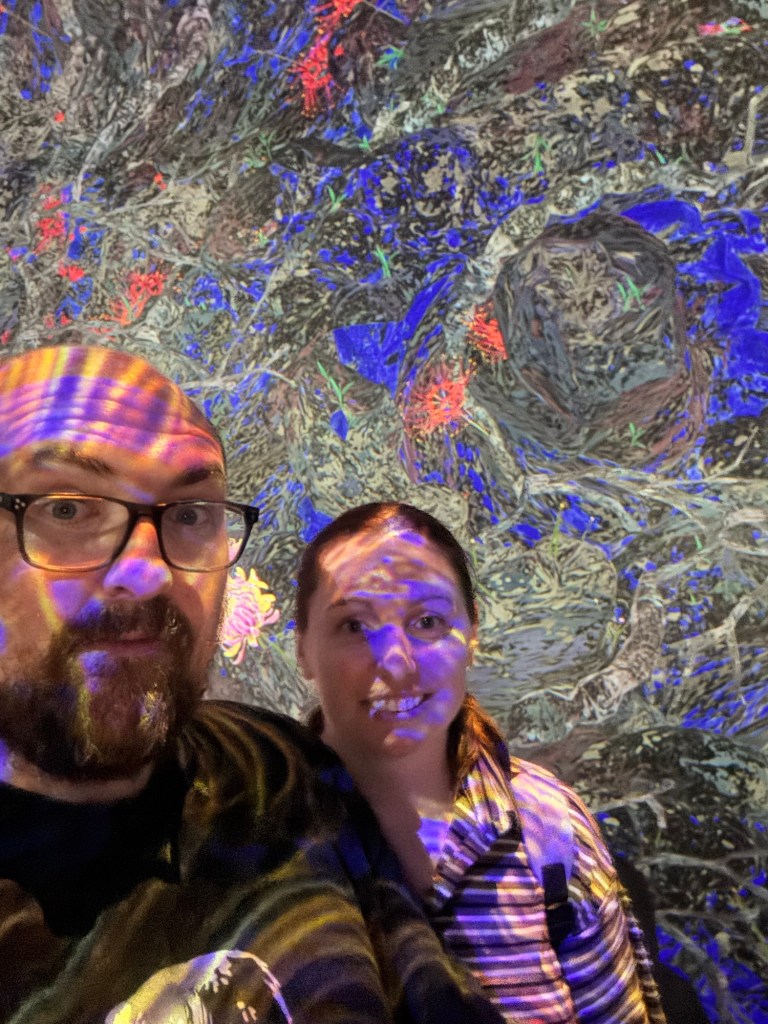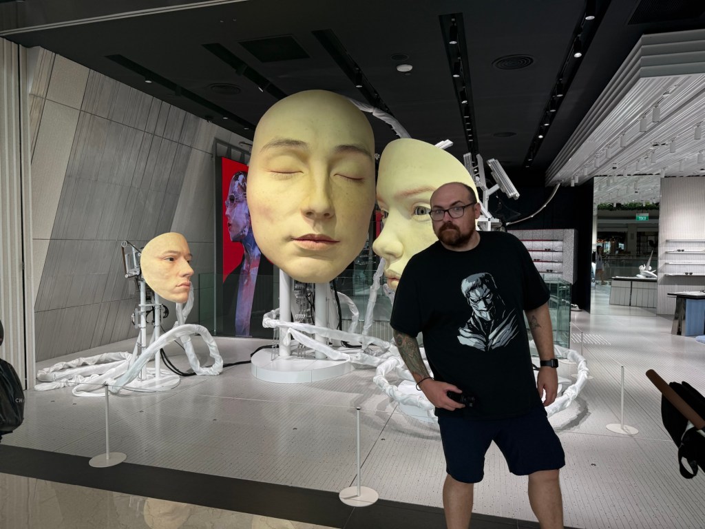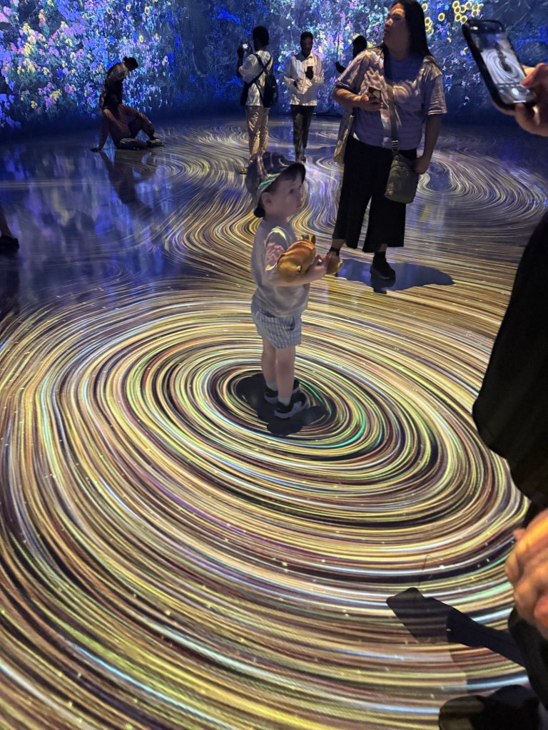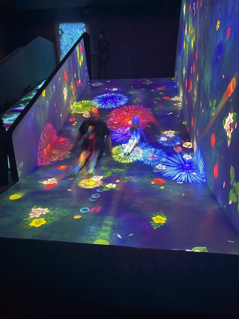 We headed to the ArtScience Museum. We had tickets to visit all of the exhibits. We saw art based around the anatomy of the human body, insects and the futuristic world, but the main attraction here is Teamlab Future World. This is an interactive digital art installation which was fun for all three of us.