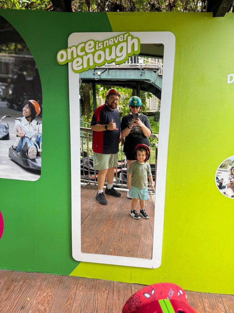 After the aquarium our next attraction was the Skyline Luge. If you’ve followed our New Zealand blogs you’ll have seen that we have done the Skyline luge twice in Queenstown and once at the original in Rotorua. It’s basically a downhill road luge that you cruise down and take different tracks and then you take a chair lift back to the top. It’s always super fun. We were concerned Julian would be scared but he was able to tandem as he is >85cm and he loved it so much, he didn’t want to stop. We ended up doing 10 runs.