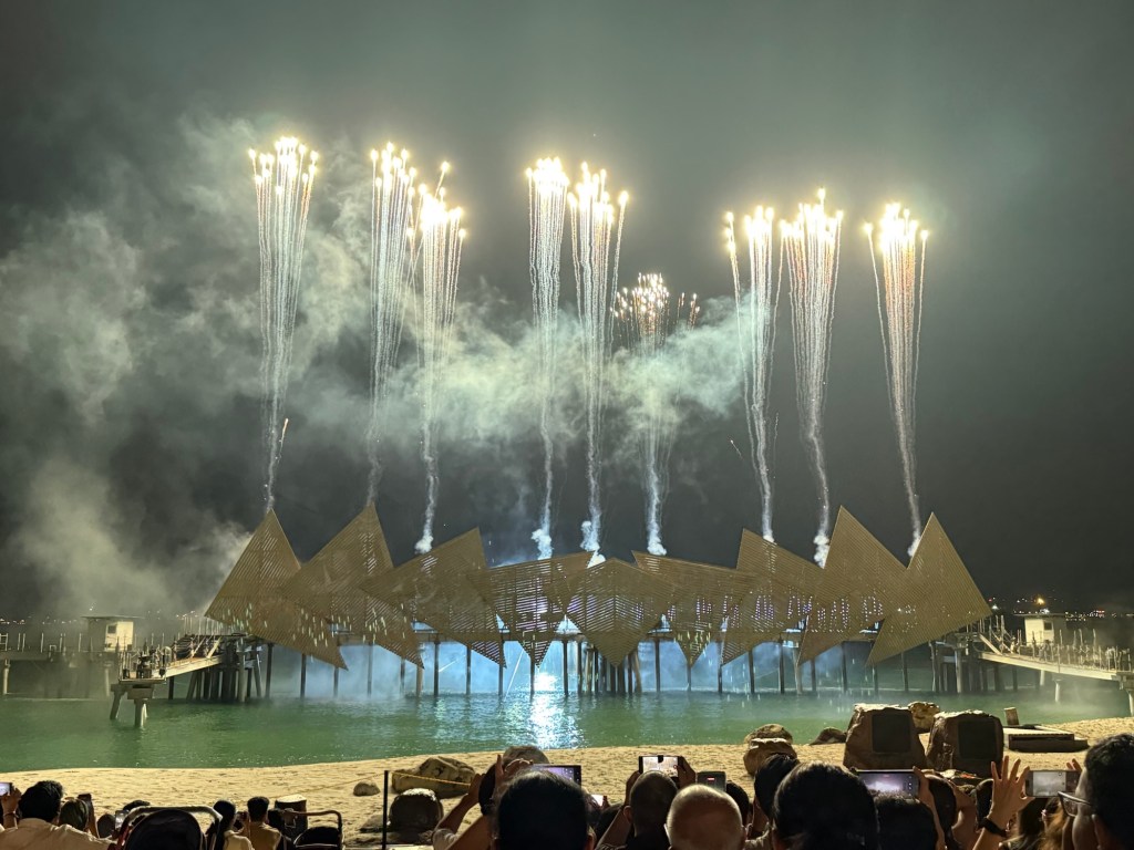 Then we took the monorail over to the beach station for our last activity of the night. It’s called the Wings of Time show. It’s laser, fireworks, music and special effects over the water on the beach. It was pretty great. Julian was a little bit scared of the fireworks but it was really very impressive.