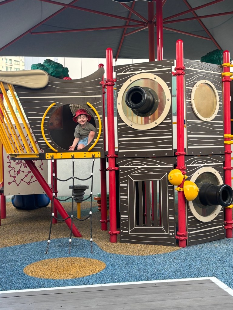 It was an early wake up this morning, you wouldn’t think 2 hours would mad such a big difference but we can’t seem to sleep past 5-5:30 unfortunately. We went down and had our hotel buffet breakfast which was decent. Pandan toast is pretty damn good. Just after we ate breakfast Julian went for a play at the outdoor playground at our hotel.