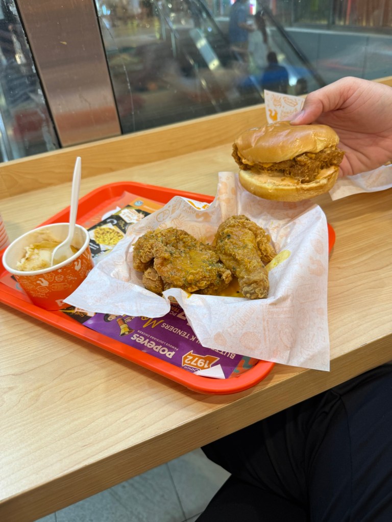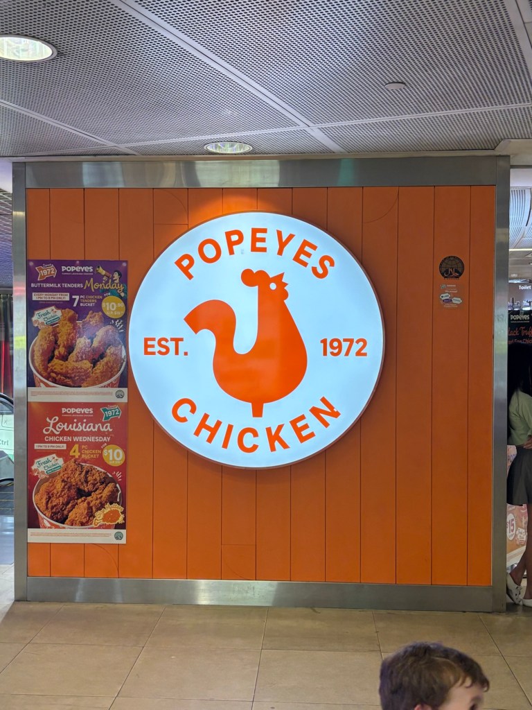 As we walked through ION we saw a Popeyes chicken and couldn’t resist getting that for dinner. Ronnie got the chicken sandwich and Aimee got some salted egg chicken. After eating many days of Asian food it felt good to get something western. It went down a treat.