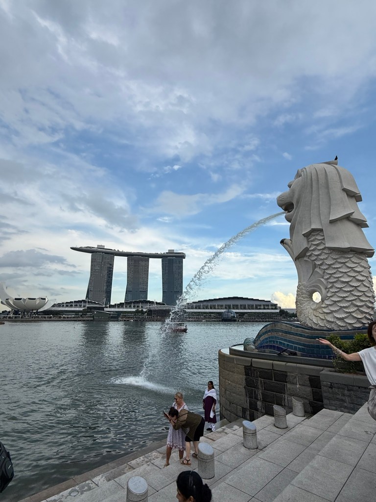 We then jumped back on the MRT over to Raffles place which was the closest MRT stop to the famous Singapore landmark – The Merlion. We had anticipated seeing this a few days ago but we didn’t get there. It’s a statue, but it’s iconic and there was ALOT of people there.