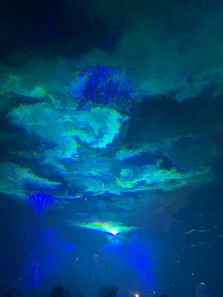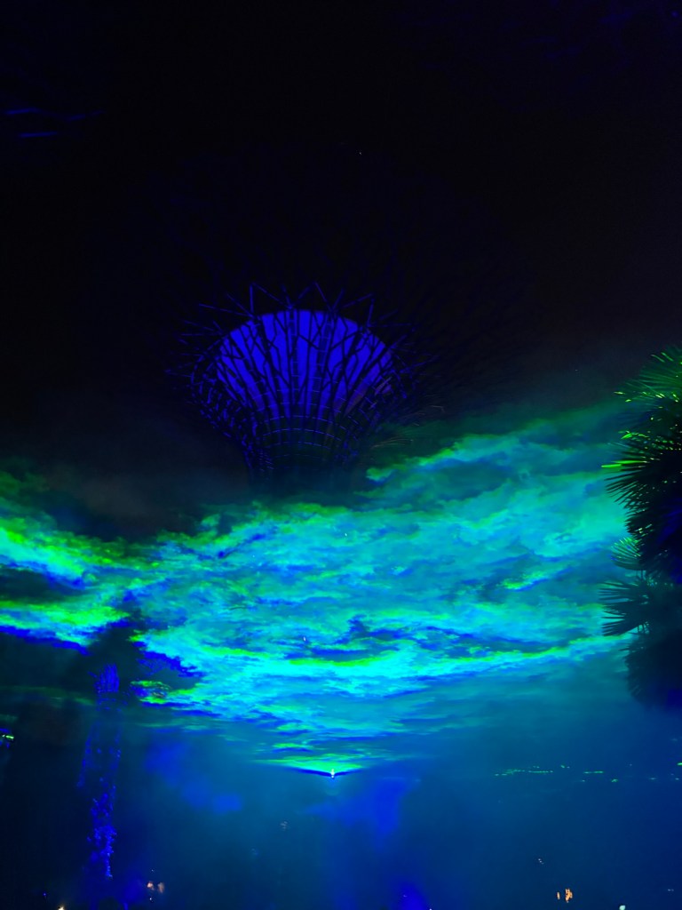 After the show they have an art installation where all of the super trees shoot out mist and then lights are projected on the mist to make it look like the aurora borealis. It’s hard to take a picture of, but it’s pretty awesome.