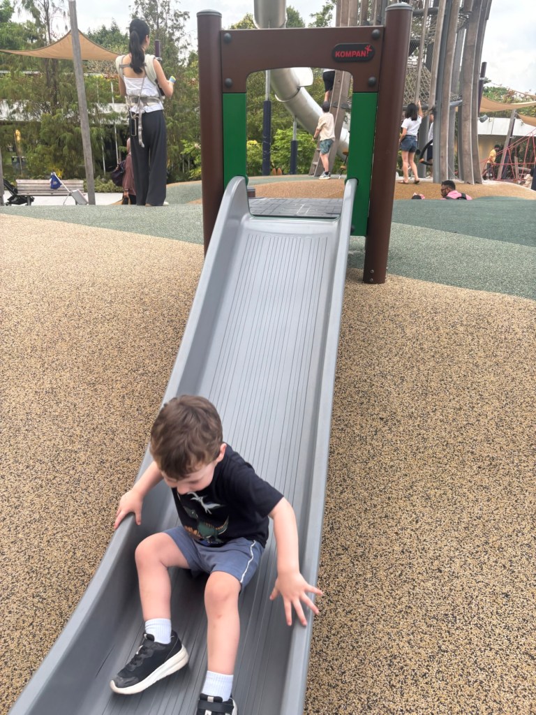 We walked over to gardens by the bay and Julian spent a bit of time playing at the playground there as the sun went down.