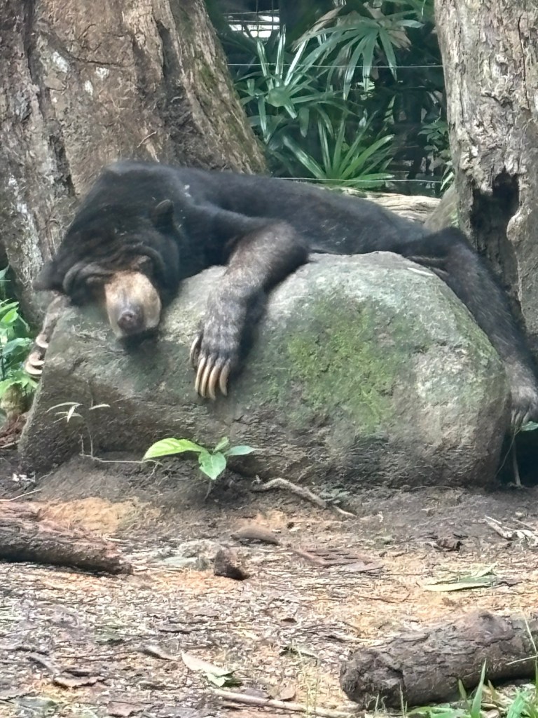 We woke up at a reasonable time this morning and had our hotel brekky. We’ve fully beaten jet lag now and are in the flow. It’s nice. Couple of slices of sourdough with peanut butter and we were ready to start the day. Today we went to Mandai Wildlife Reserve. The only way to get there is by taxi, unless you want to spend 1+ hours on public trains and busses, which we didn’t, a little bit extra for the taxi saves over an hour and was worth it to us.