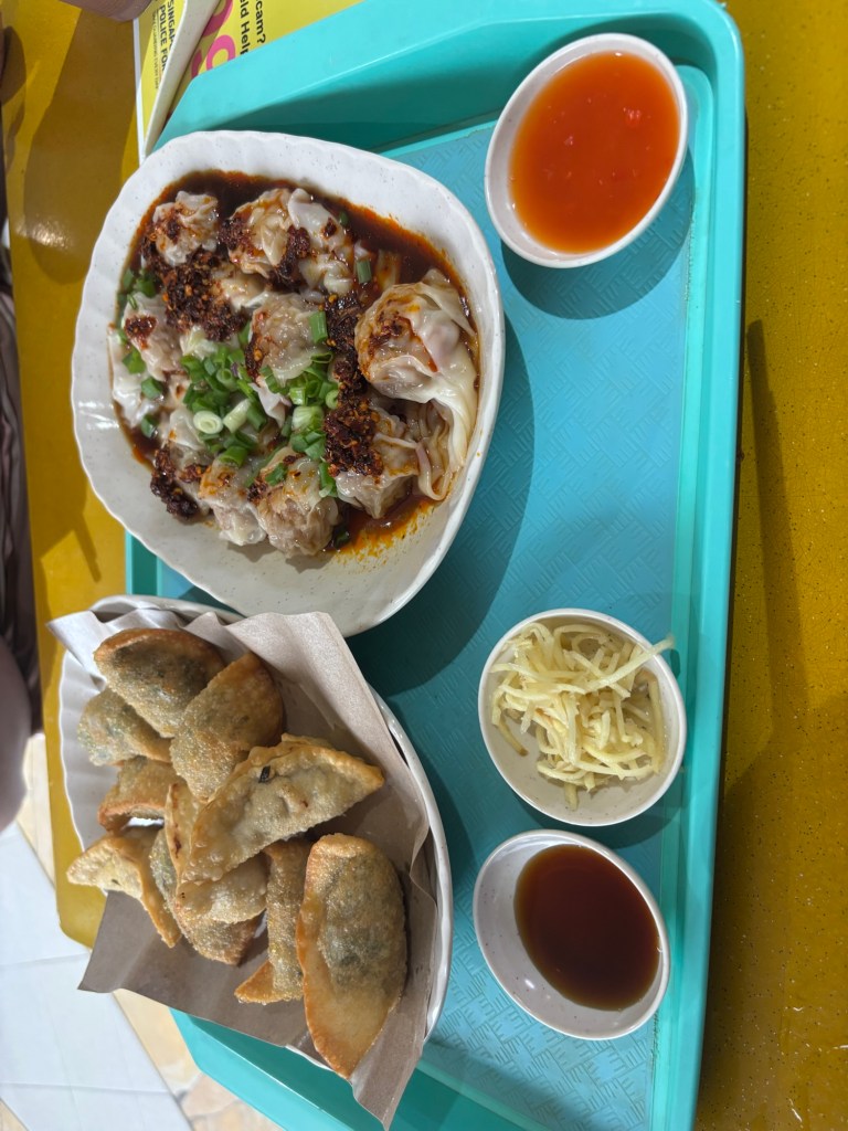 We took the cab home and then went out for a walk down to Zion riverside for a cheap hawker dinner. We got their famous Fried Kway Teow, which was a bit fishy for our tastes. We also had some fried and steamed dumplings.