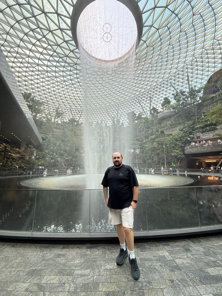 We had breakfast at the hotel and booked a cab to take us to the airport. It was a seamless trip. After checking our bags in we walked over to The Jewel which is a 7 storey massive shopping centre that is located at Changi Airport and also the home of one of Singapore most famous landmarks the rain vortex.