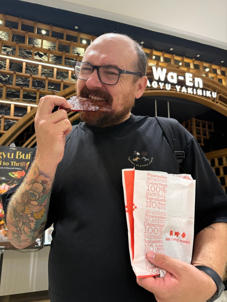 That was delicious and then we tried some Bakkwa which is pork that is dried and glazed, kind of like jerky.