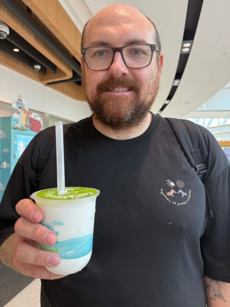 That was nasty. Then we tried a coconut iced drink from the ever popular Mr Coconut.