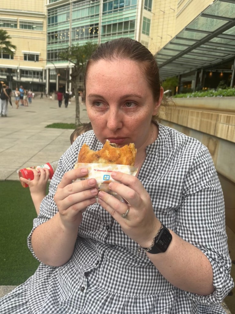 We then went to a place that we had planned for a long time called Mon Chinese Beef Roti. They handmake these mince and onion filled flaky pastries and they cost about $1.50 each. We got one each for dinner and sat out the front of Suria near the fountain to eat them.